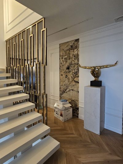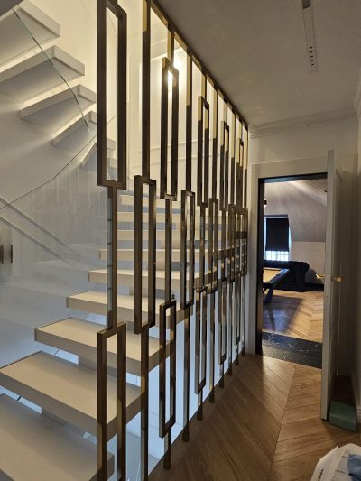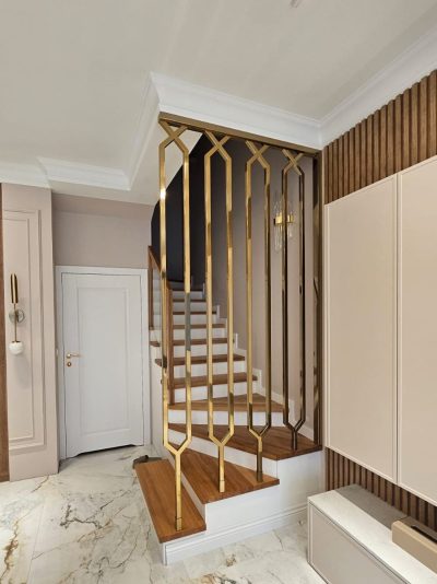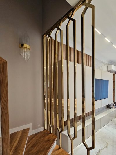 Złote balustrady to nic innego jak stal szlachetna z dużą zawartością chromu, która jest polakierowana na złoty kolor. Jak na każdą stal przystało, ta też daje się poskromić, i staje się cudowną złotą balustradą na schody, antresole, tarasy i balkony. Balustrady mogą mieć prostą art decowską formę lub barokowe wykręcane wygibasy. Stal nierdzewna nadaje się do obróbki termicznej ale łatwiej ją wykręcić niż wykuwać. Jej niezwykła sprężystość i twardość a przy tym odporność na korozję pozwala na wykonanie barierki niezniszczalnej, wiecznej. Od dawna znana była jako nierdzewka, miała srebrny błyszczący kolor lub szary szlif. Znamy ją wszyscy z biurowych, szpitalnych i sklepowych schodów. Łatwa w utrzymaniu czystości, nie wymagająca konserwacji, nawet wirusy i bakterie nie utrzymują z nią zarzyłych stosunków. Produkt idealny. Nie trudno się więc domyślić, że można z niej tworzyć cuda ma miarę czasów, w których żyjemy. Możemy zrobić coś co się nawet astrologom nie śniło, gwiadorskie popisy architektów to nasza codzienność. Robimy złote i srebrne balustrady, ścianki, przepierzenia, parawany. Wszyscy, którzy kochają minimalizm wybiorą szkło. A ono w towarzystwie złotej obwoluty wygląda jak milon dolarów. Nic tylko brać.